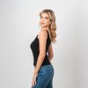 Designové dámské tílko z žebrovaného úpletu s neviditelnými ramínky a klenutým výstřihem. V univerzální černé barvě.