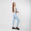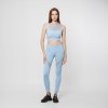 Nebesky modré dámské sportovní legíny s vysokým pasem, push-up efektem a síťovanými panely na stehnech. Rychleschnoucí, antibakteriální a ušité z recyklovaného materiálu.